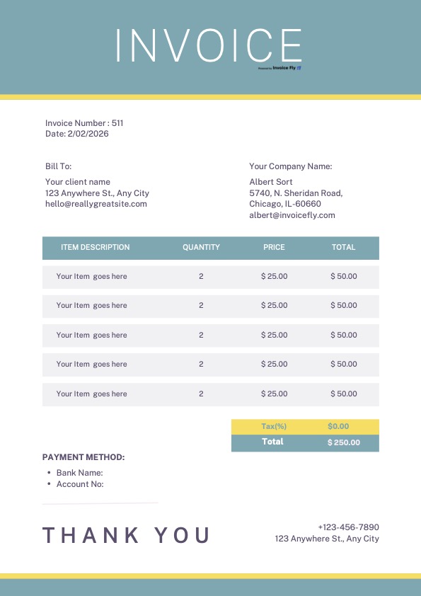 Teal and Yellow Invoice Template