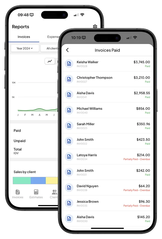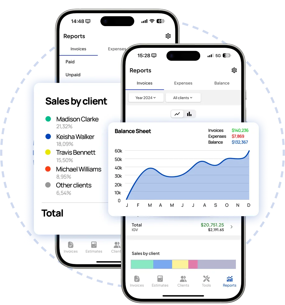 Our business report feature is specifically tailored for small businesses and blue collar workers from the US and all around the world, who need to check their financial status from a secure and cloud-based invoicing software, at any time, and from anywhere.