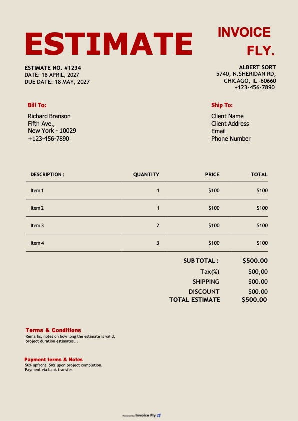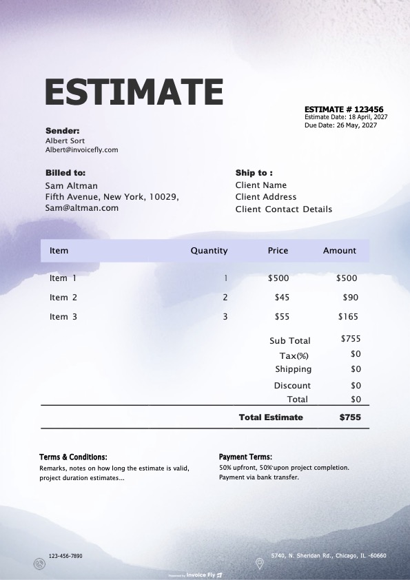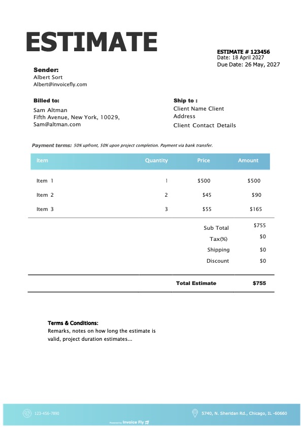 - Save the file, print it, or export it as a PDF to send your estimate to the client