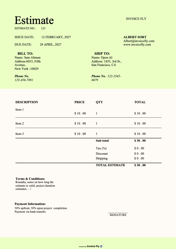 - Estimate Template for Excel